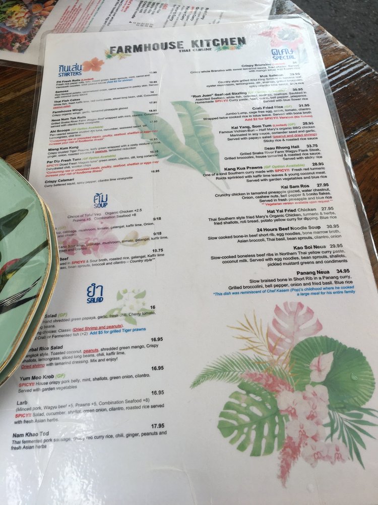 Introducing the Menu at Farmhouse Kitchen Thai Cuisine